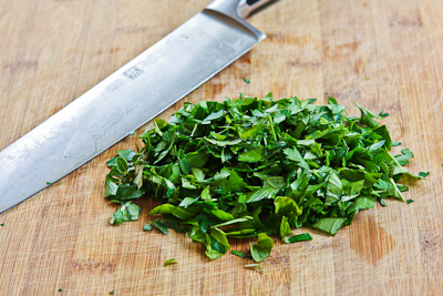 Chop up a generous amount of fresh basil, parsley, and oregano.