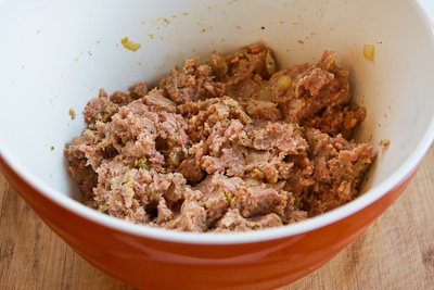 Then use clean hands to mix the ingredients together just until they are combined.
