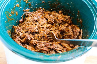 Put the browned meat in the slow cooker, pour the sauce over, and cook on low until the meat pulls apart easily with a fork - about 6 hours. (I used my Crock-Pot 2.5-Quart Slow Cooker
