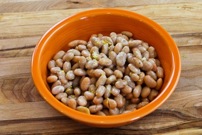 Drain the beans into a colander placed in the sink; then rinse with cold water until no more foam appears and let the beans drain.