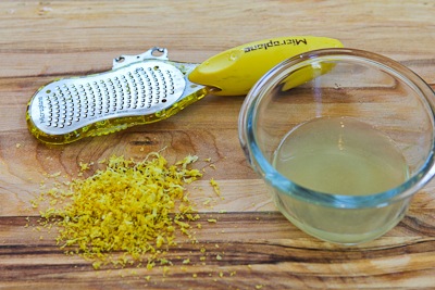 Then whisk the lemon juice and zest with the mayo, olive oil, and some coarse ground black pepper.