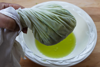 Put the zucchini inside a kitchen towel or cloth napkin and squeeze out as much liquid as you can. (You'll probably be surprised how much liquid comes out.)