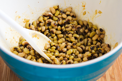 Mix about 2/3 of the dressing into the drained black-eyed peas, stirring well so all the peas are coated with dressing.