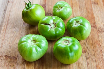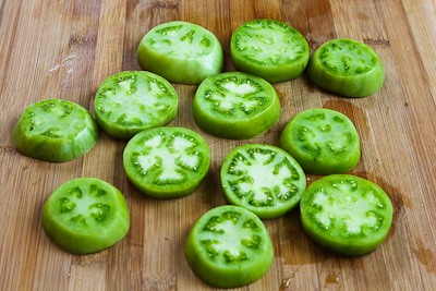 Pick six firm green tomatoes. (We looked for ones that weren't even starting to ripen.