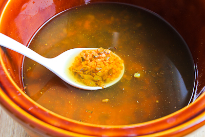 These are the red lentils I love so much for soup. Pick them over and discard anyone discolored ones and rinse with cold water before you add them to the slow cooker. (The soup called for 1 cup of lentils, but Jake and I agreed that next time we'd use 1 1/2 cups for a slightly thicker soup.)