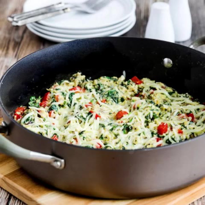 Power Greens Egg Skillet is a great dish for low-carb or Keto diet plans, and for any phase of the original South Beach Diet. South Beach would recommend reduced-fat cheese, and low-carb diets would prefer full-fat cheese for this recipe.