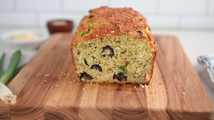 This tasty olive bread made with almond flour has only about 4 net carbs and 12 grams of protein per slice.