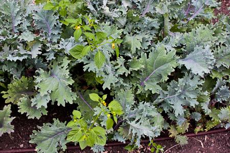 And speaking of co-existing, there are quite a few volunteer tomatillos coming up among the Red Russian Kale, and I’ve decided I’m going to keep a few of the biggest ones.