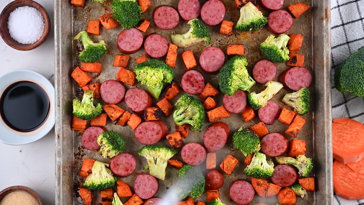 How to Make Roasted Sweet Potatoes, Sausage, and Broccoli Sheet Pan Meal: