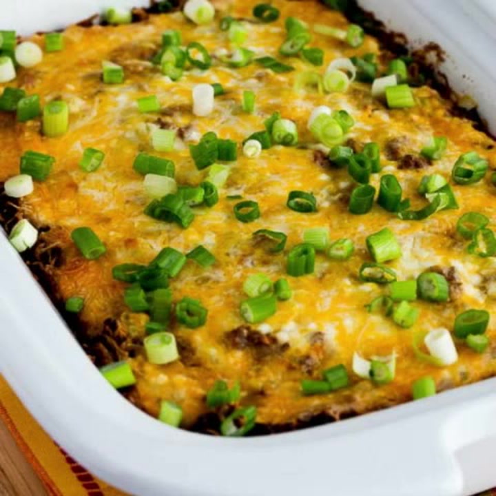 If you use the low-carb tortillas I recommend or a similar product, this Mexican Lasagna recipe has 9.3 net carbs in a serving. (That’s based on 10 servings; some people might want a larger serving so adjust accordingly.) If made with whole-grain tortillas, lean beef, and low-fat cheese, this dish would be suitable for phase 2 of the original South Beach Diet.