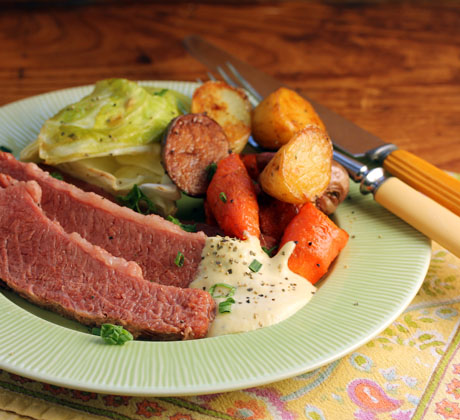 Not all my siblings love corned beef and other Irish-American foods the way my dad did, but this year it just so happens I’m going to have visiting family members in town on March 17, so I’m going to have a St. Patrick’s dinner.  Of course I’ll make my Corned Beef with Veggies and Horseradish Sauce, something I made every year for dad.