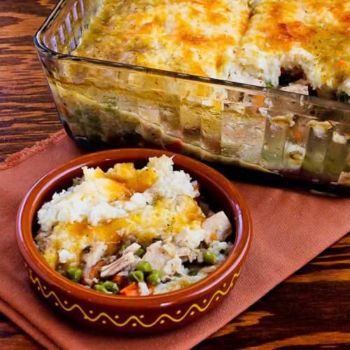 This Leftover Turkey Shepherd’s Pie Casserole with Garlic-Parmesan Cauliflower Topping was so good that it would be a shame not to make it frequently with chicken as well.